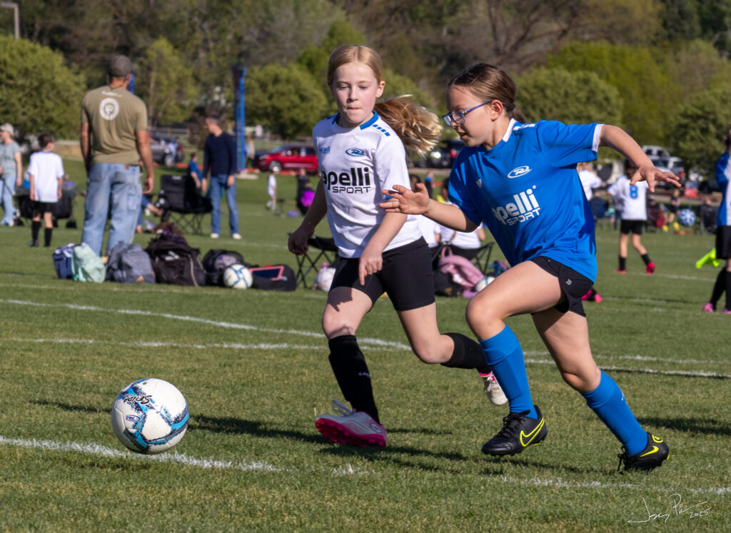 Analiese (in blue) playing soccer