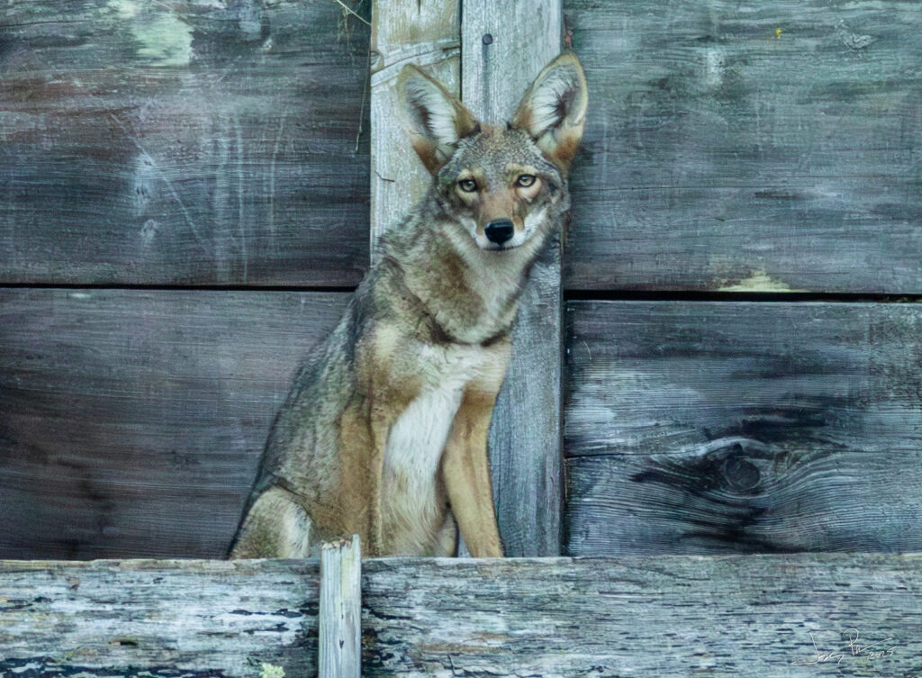A coyote visiting the backyard