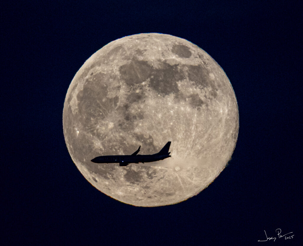 Our deck in Redwood City offers a perfect view of the full moon right in front of the landing pattern for Oakland and SFO. If you wait long enough you can catch a plane going through the moon!