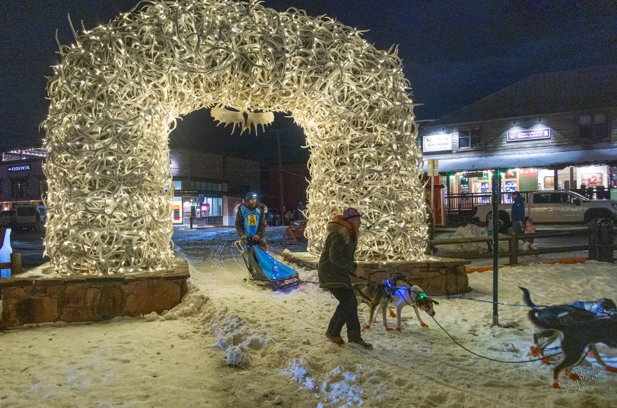We arrived on Friday January 30 in the afternoon and found our cozy home at The Rockwell Inn in Jackson Wyoming. We walked around the small town and found that there was the yearly dog sled races right in town! Normally they just set up a start/finish line at the town square, but this year it has been so warm they had to cart in snow! But it still was fun to see the races. Fairly warm (in the 30’s I think).