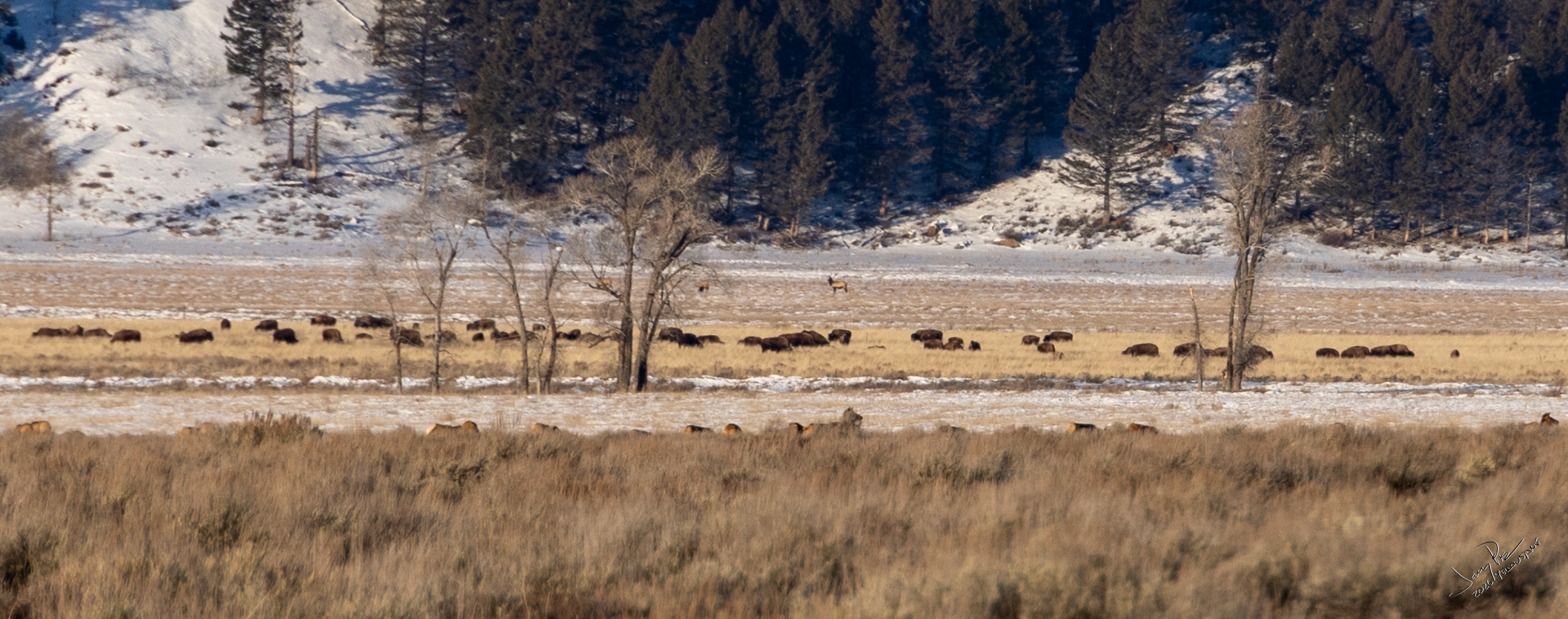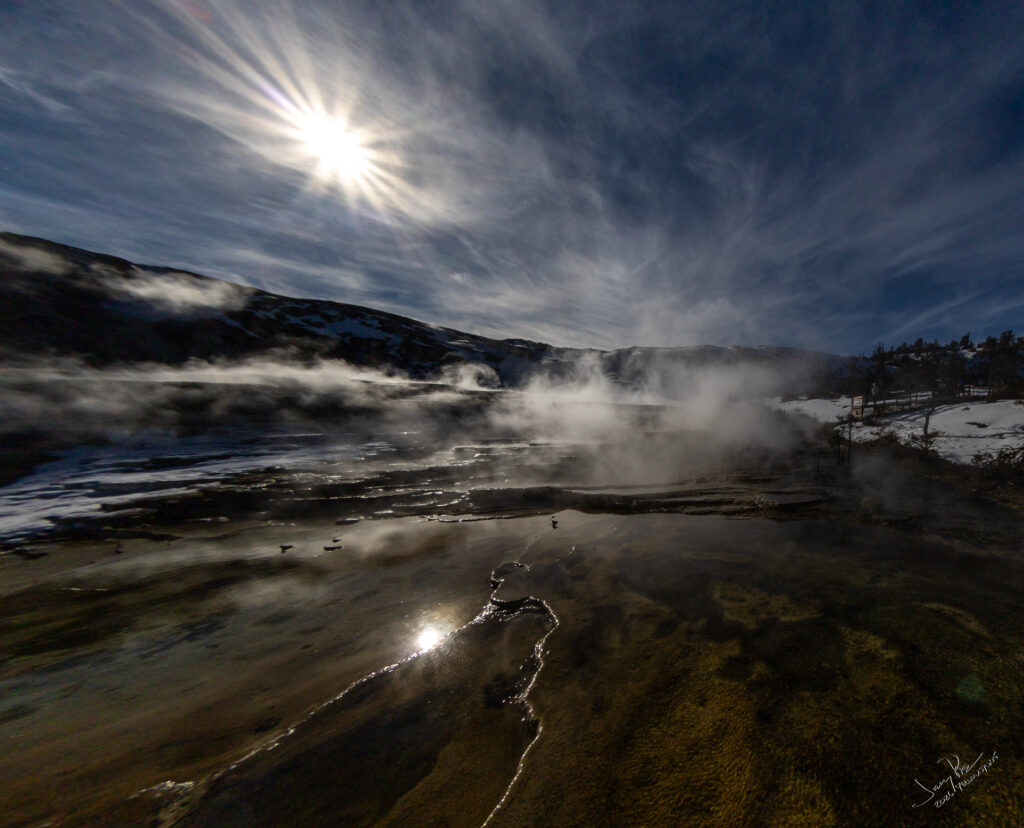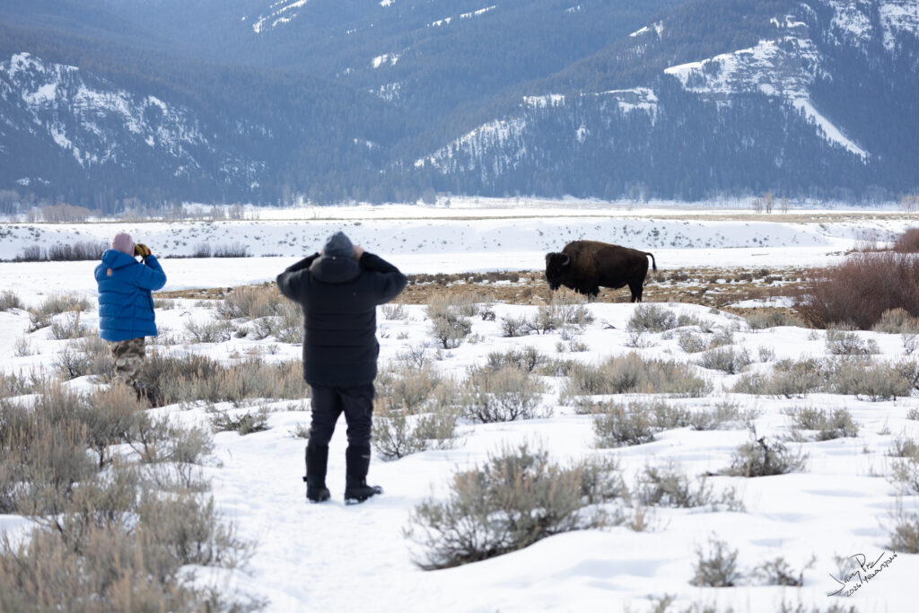 We head out for more wildlife sightings. We head up to the east entrance and part of Lamer valley where there are two families of wolves known to hang out. But no luck in spotting them. They do cover a really big territory and it’s not always possible to see them. We did see a number of coyotes both up close and also a fair distance away. LOTS of buffalo.