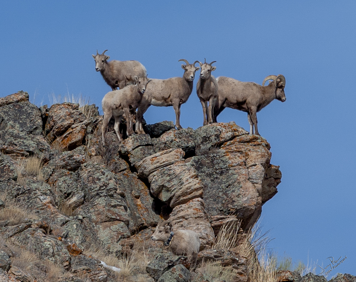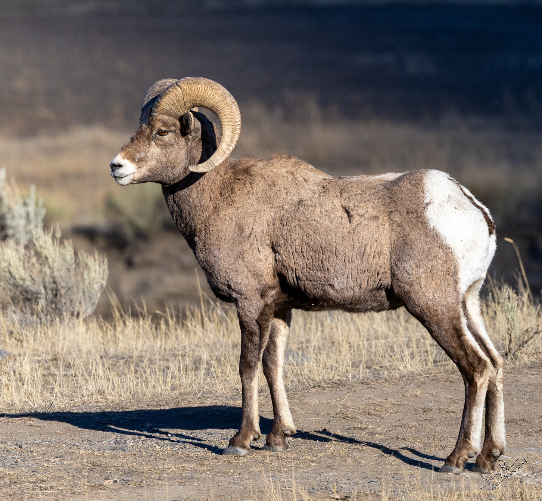 We also came across some bighorn sheep both up in the hills then right next to the road. Everything seemed OK until the biggest male sheep went forward and got spooked and ran like the devil and ALL the sheep decided to run with him to the other side of the road. Our best guess was he heard a coyote or something and decided it was time to get to a safer place. He didn’t seem to care about us all taking pictures!
