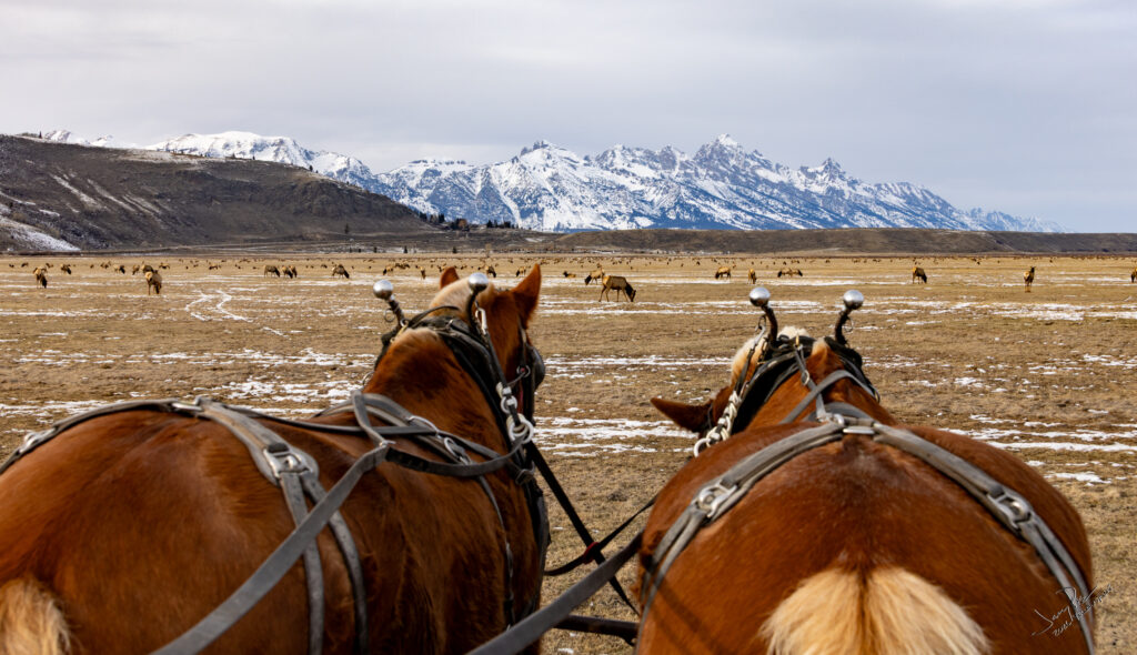 Next we went to the Wildlife Art Museum for lunch and a tour. It’s clear there is money in the area. Across the street for the “sleigh” ride. Well, since there was almost no snow it was a wagon ride (with wheels). We went right next to the Elks and through the herd. For some reason the Elk don’t care about horses or a wagon full of people. Fun to see them up close!