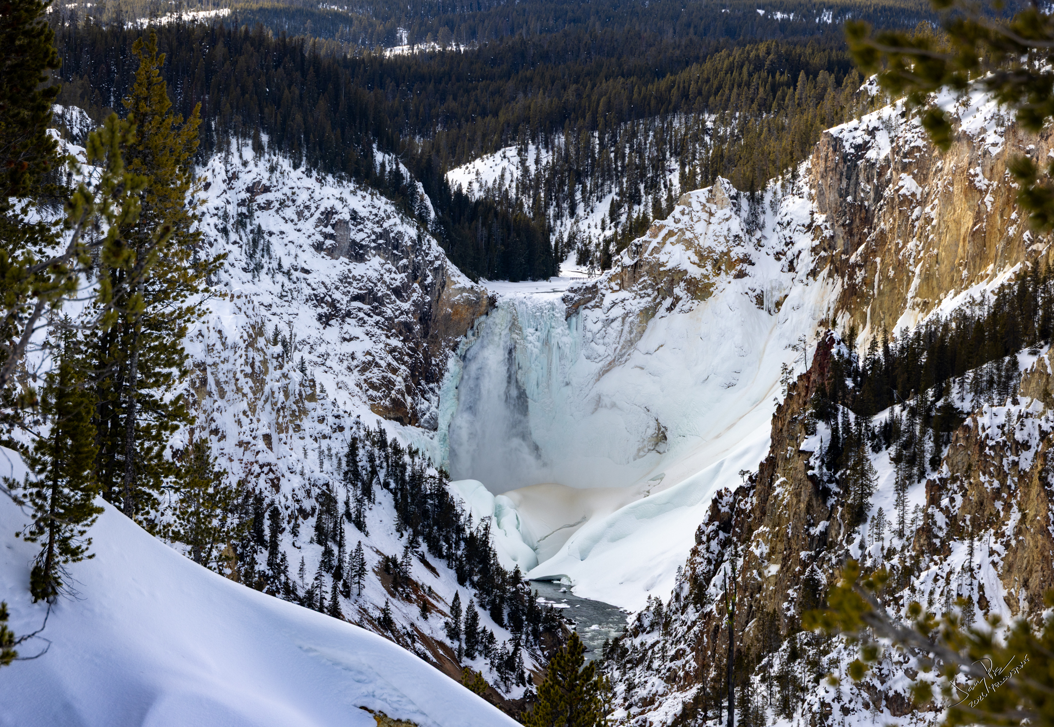 We then went to the Grand Canyon of the Yellowstone to the BEST overlook. We were alone!! Great to have a snow coach!