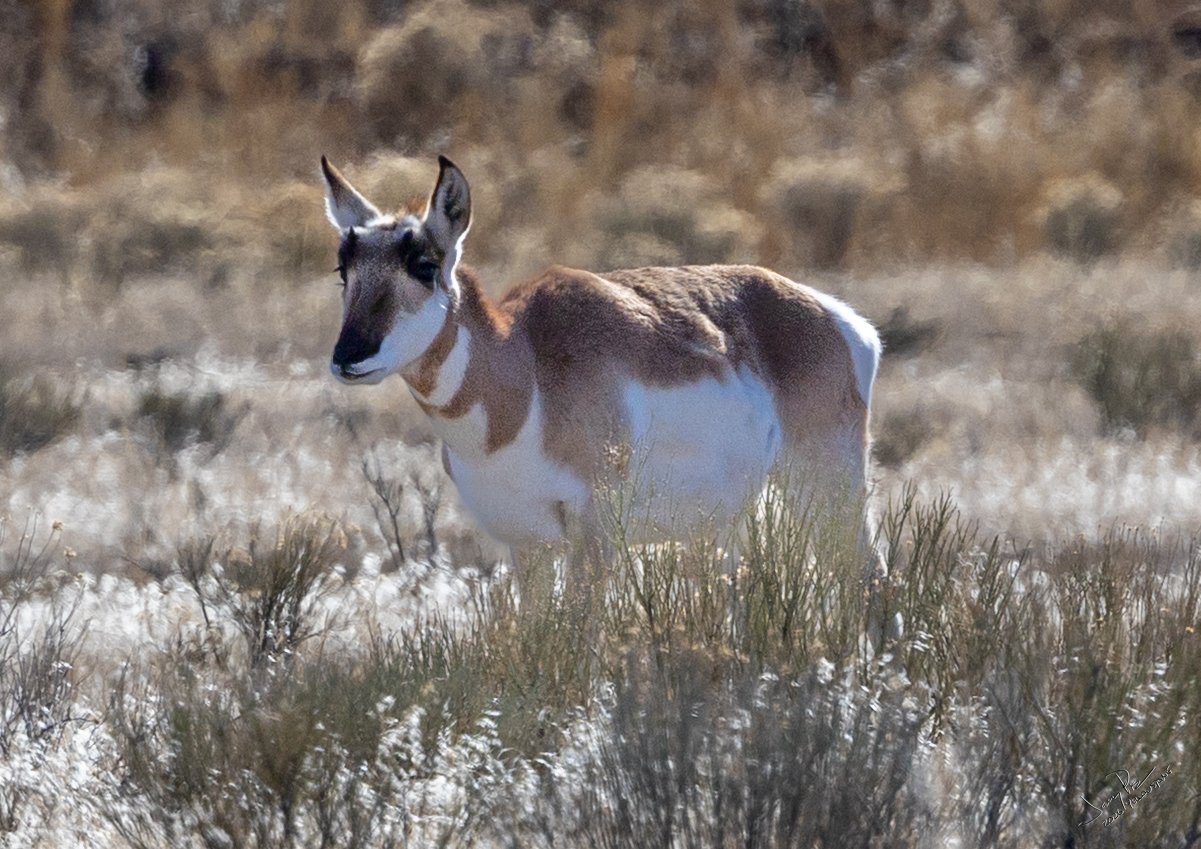 Then we spent the rest of our last day in the park on a drive from Mammoth to Bozeman. We were not disappointed! There were herds of pronghorn sheep near the road and it gave us a great view of them. Fun to see their behavior!