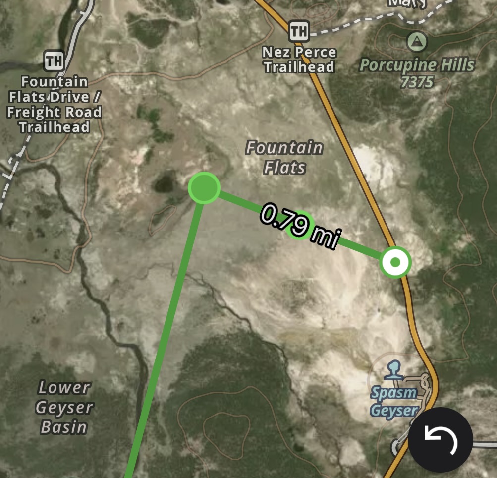 Later I checked the map and it was 1.84miles away when we first spotted her. (And 50’ above us). That’s a long way to see a 2’ high puppy! Oops, Jake checked it out and thinks it was 0.8 miles away. I liked my distance better, but he’s probably right! I’m lucky to have the pictures come out as clear as they are!!